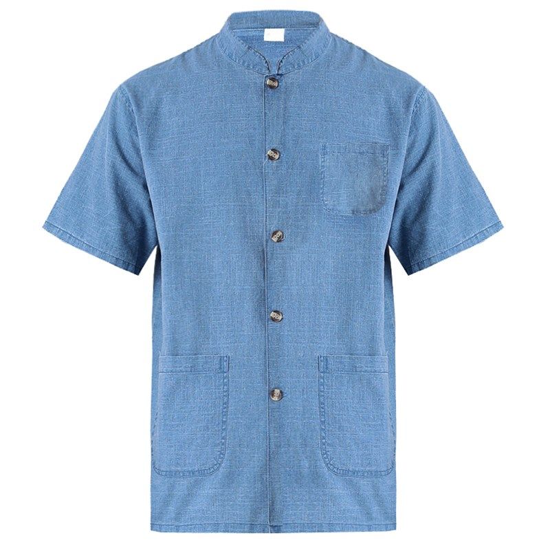 爸爸短袖衬衫男夏季中老年人亚麻上衣爷爷夏N装衬衣宽松系扣老头