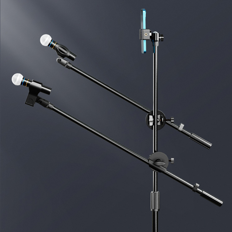 麦克风支架摄影横杆夹轮手机直播俯拍斜杆话筒支架三脚架固定夹盘