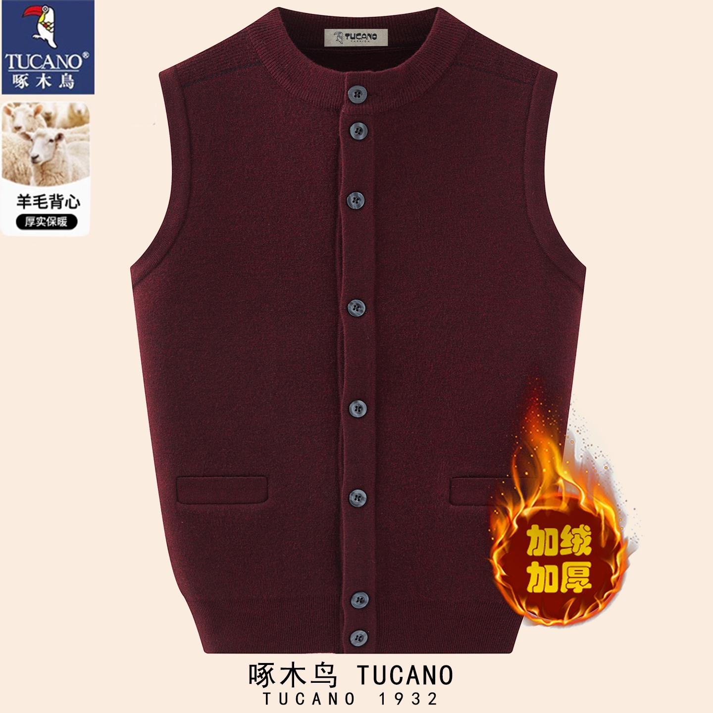 啄木鸟开衫背心男士加绒加厚羊毛衫针织毛衣外套马甲秋冬坎肩男装
