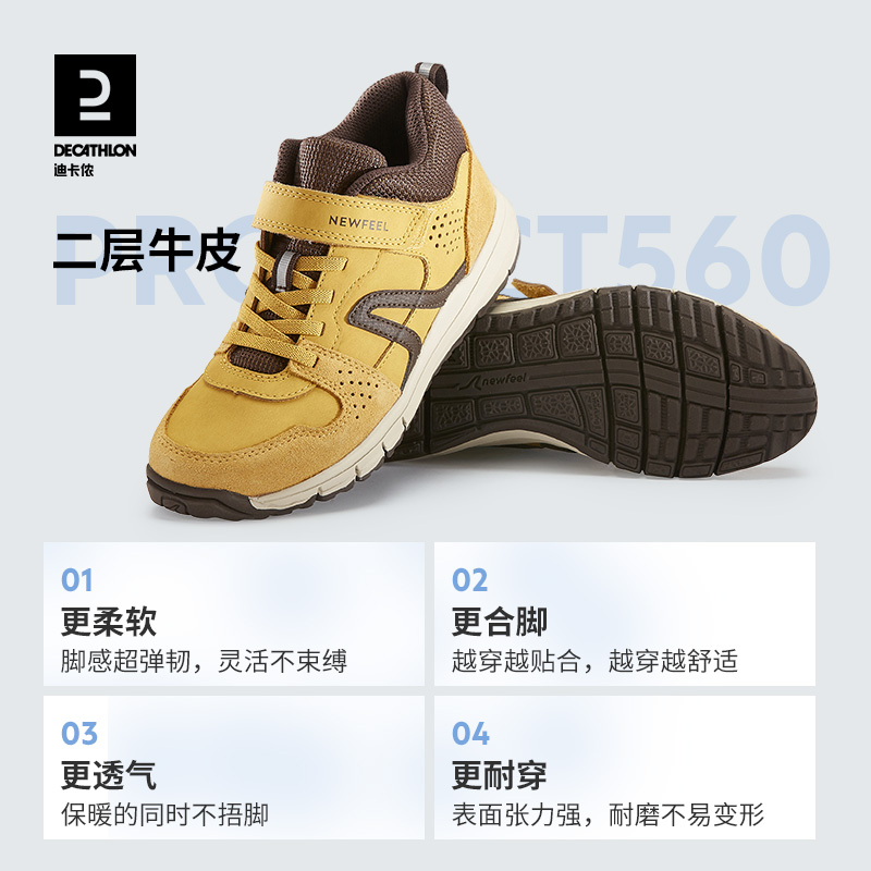 迪卡侬旗舰儿童运动鞋春秋真皮牛皮棉鞋男女大童休闲跑步鞋子KIDS
