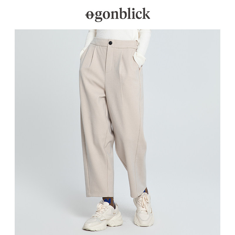 北欧时刻高腰宽松休闲西裤女直筒垂感显瘦萝卜九分小个子哈伦裤子