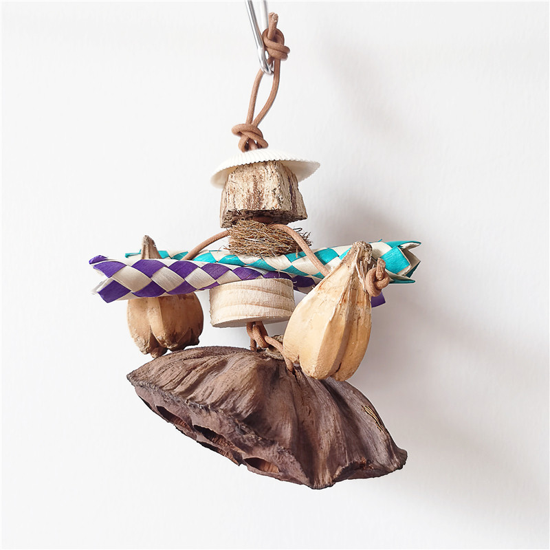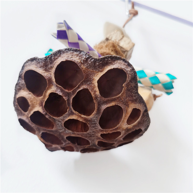 鹦鹉啃咬天然莲蓬杨桃玩具挂件