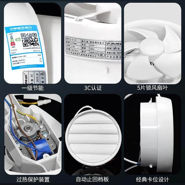 金羚卫生间窗式排气扇强力厨房抽风机家用厕所静音圆形百叶换气扇