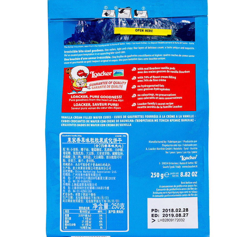 意大利进口莱家Loacker/巧克力榛子威化夹心饼干休闲小吃零食食品