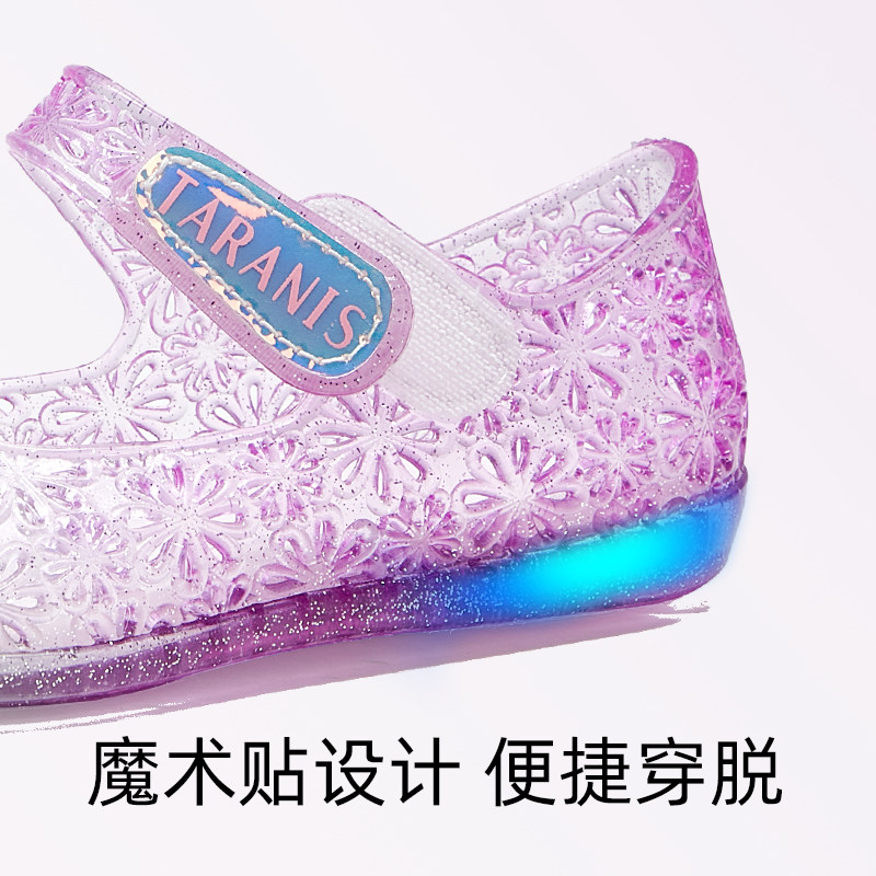 泰兰尼斯夏季新款公主水晶鞋凉鞋儿童果冻鞋女童闪灯鞋女孩发光鞋