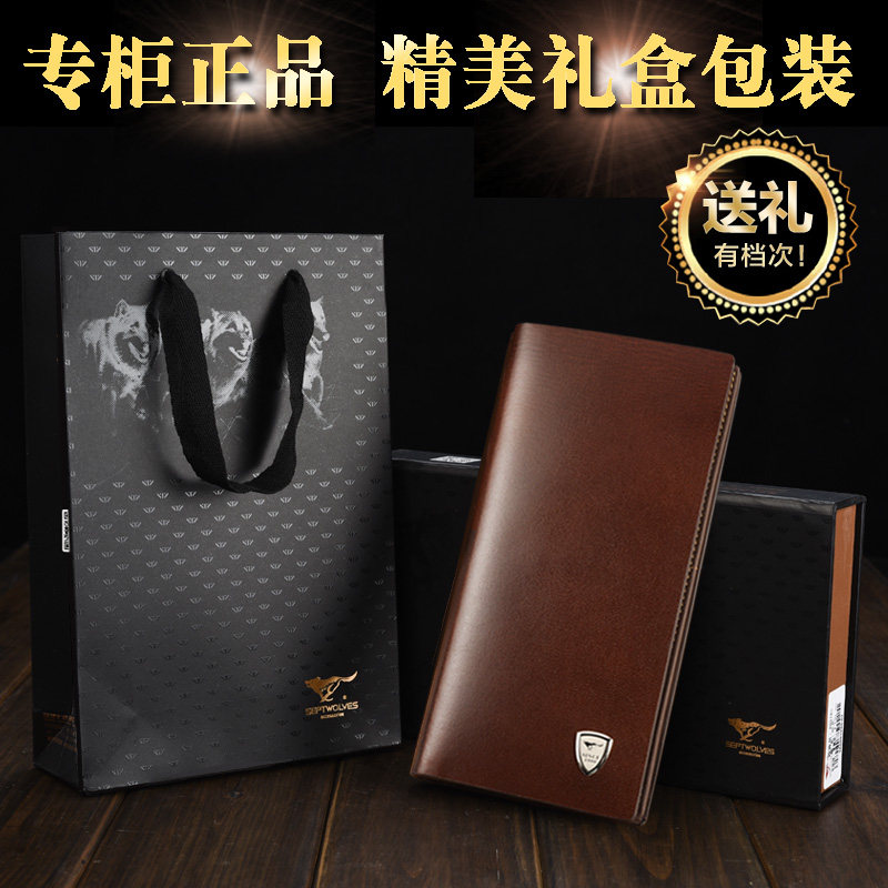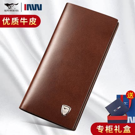 七匹狼钱包男士长款真皮高档皮夹子2026新款牛皮西装夹男式票夹潮