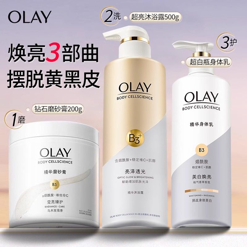 OLAY美白洗护套装烟酰胺沐浴露磨砂膏精华乳液正品全身提亮身体乳