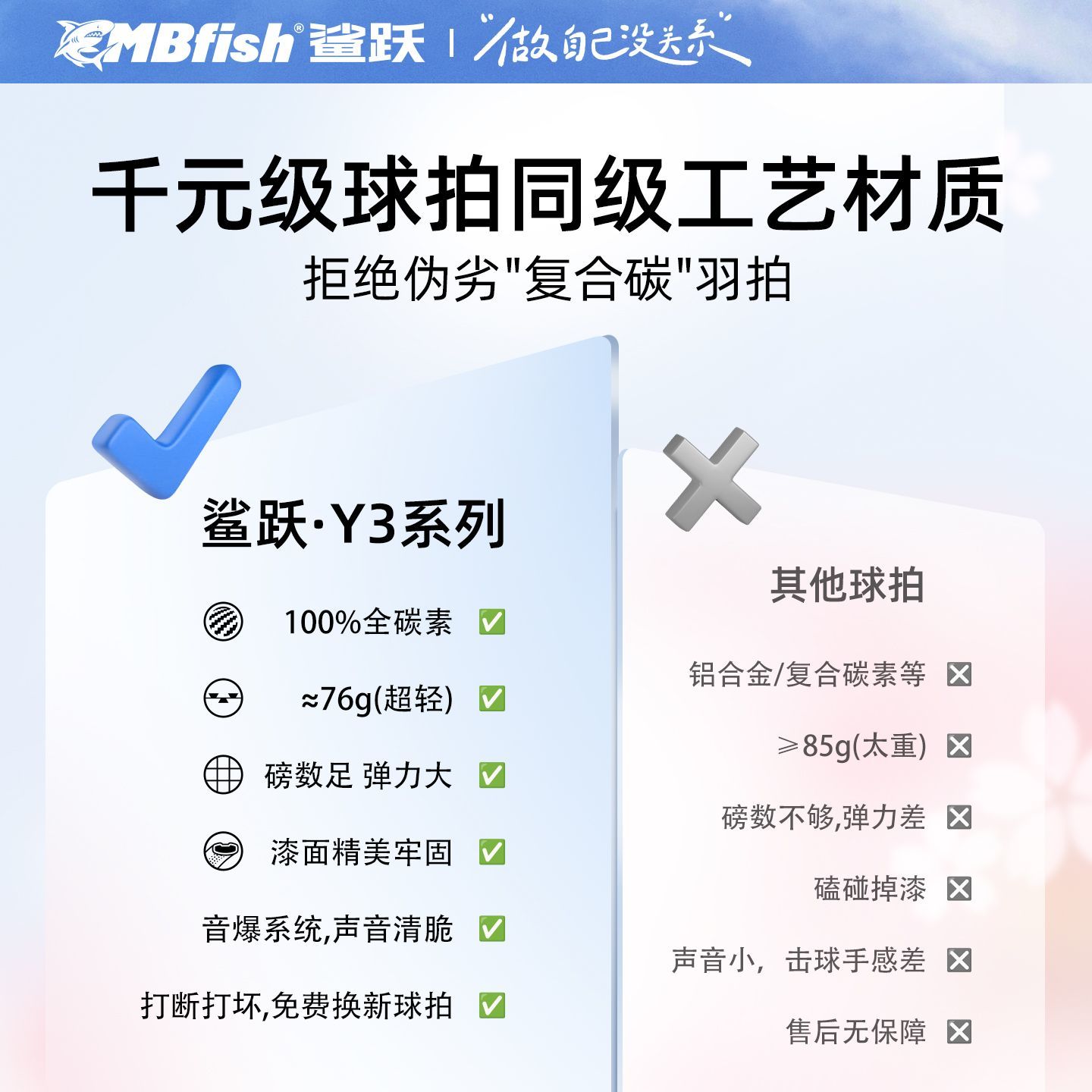 mbfish鲨跃羽毛球拍官方正品儿童全碳素超轻女生专业训练双拍套装