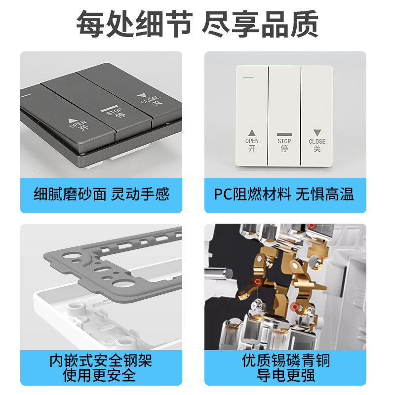 86型通用电动卷帘门开关车库卷闸门按钮控制升降阻燃面板自动复位