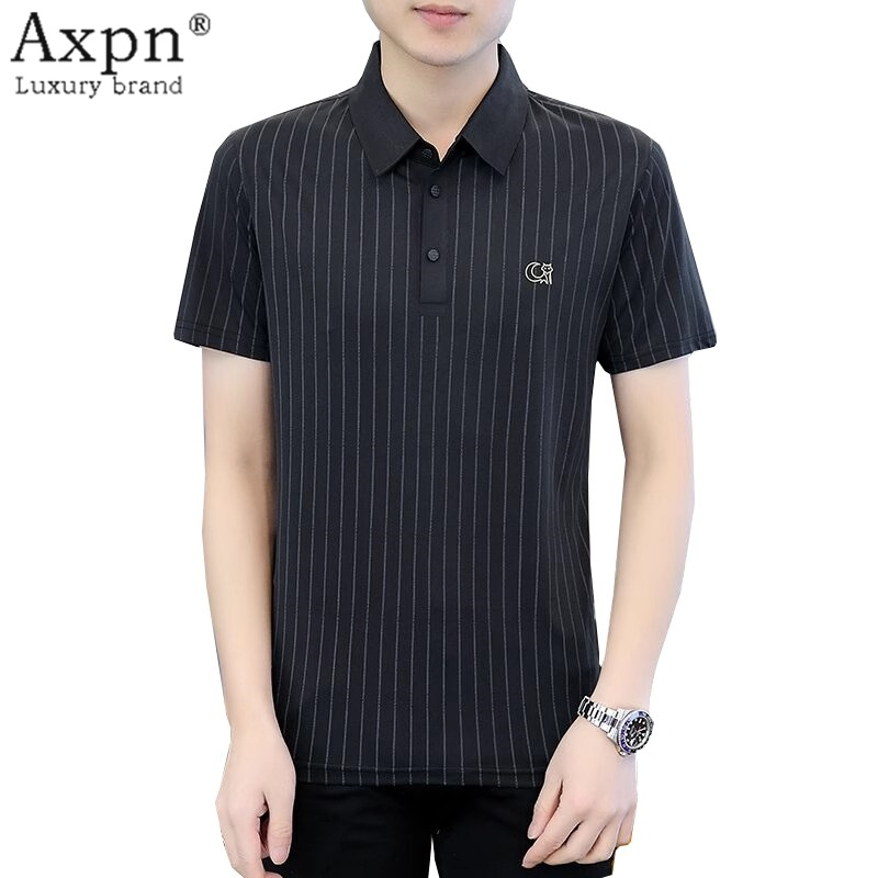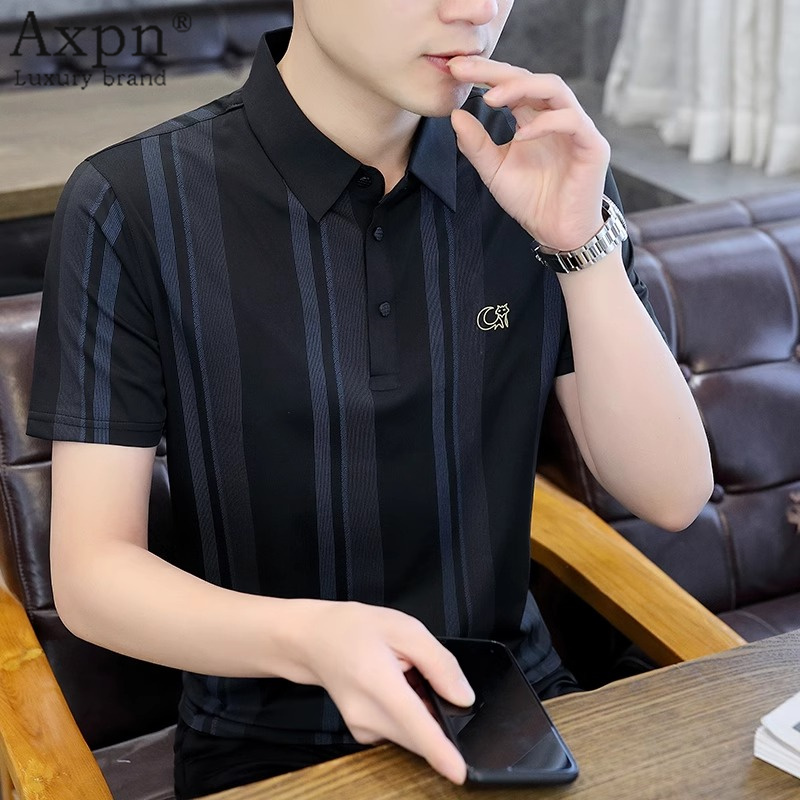 短袖T恤男2025夏季新款高端商务冰丝休闲带领polo衫条纹半袖上衣