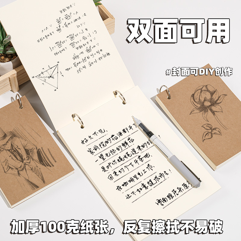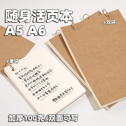 书昶a6活页本环扣a5空白本笔记本小本子绘画游戏记录册口袋本环装速写本随身便签本牛皮纸封面学生笔记本