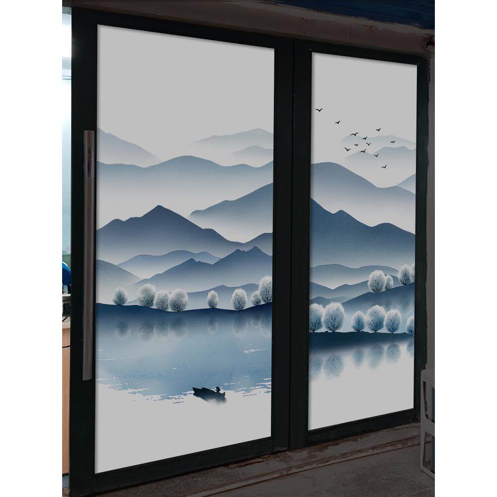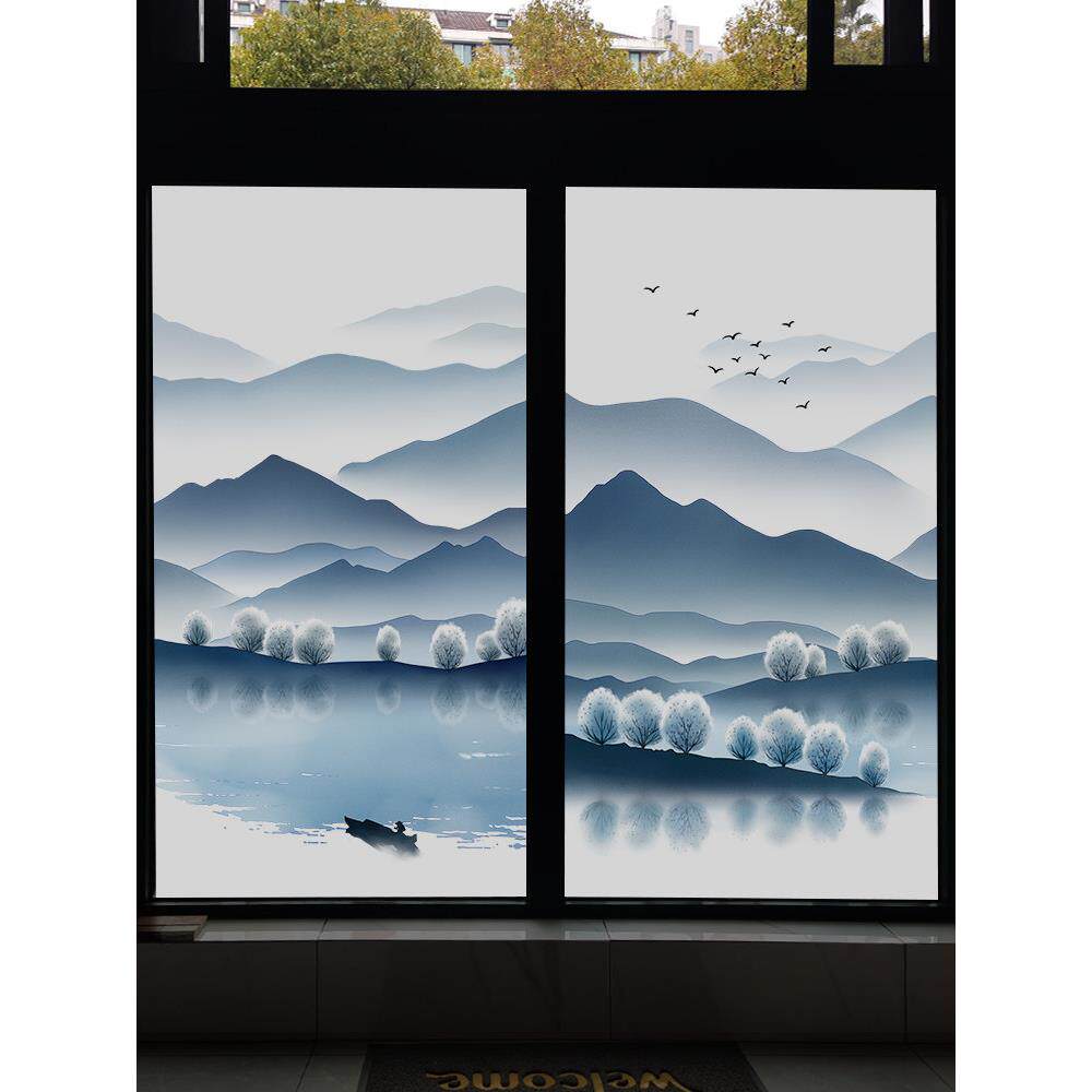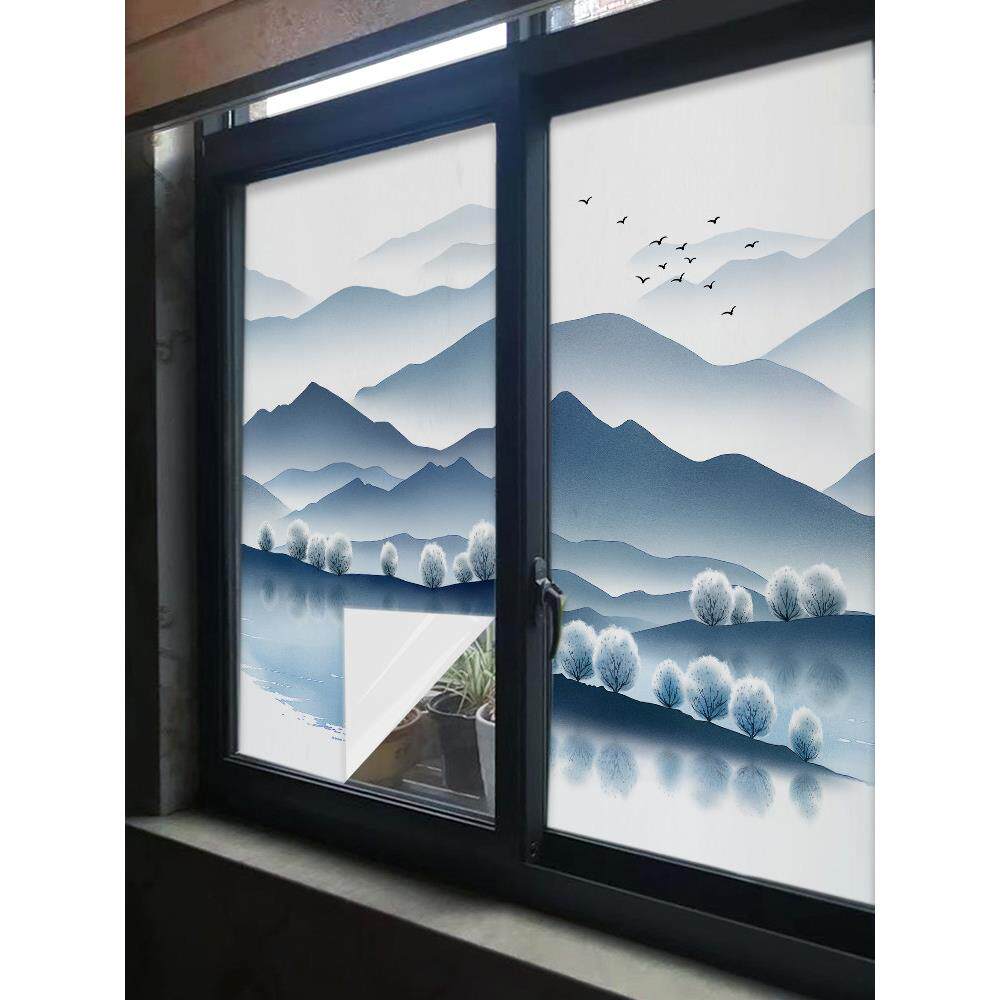 新中式窗贴玻璃贴纸静电贴膜全遮光白底膜遮阳型太阳膜隔热窗户纸