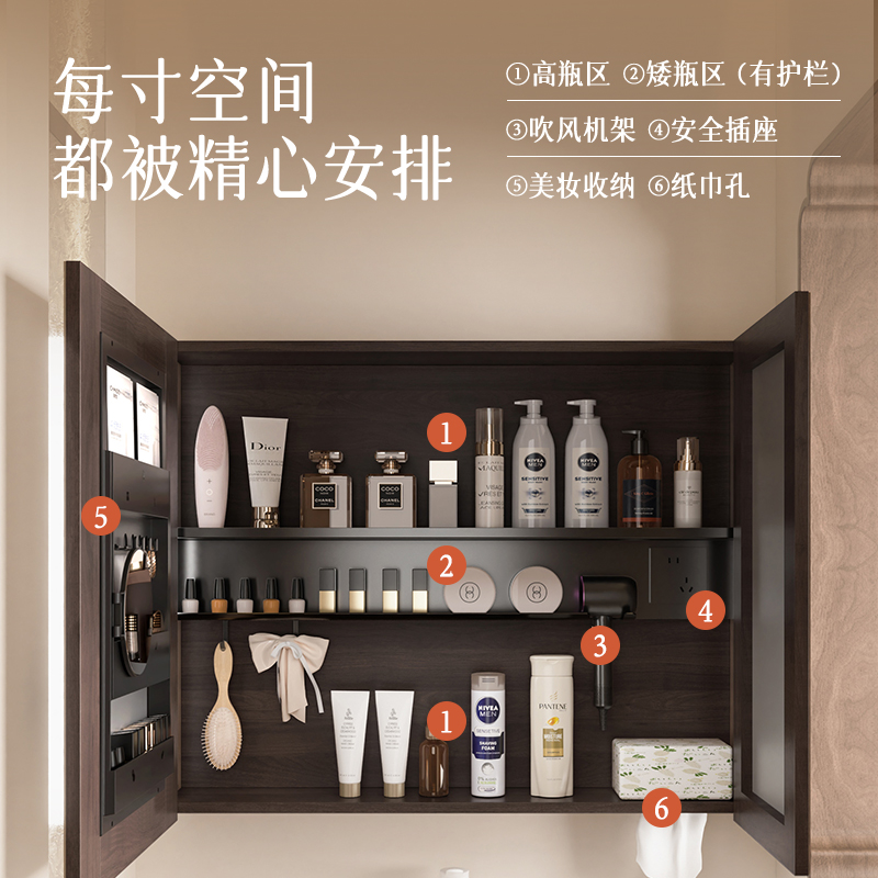 心海伽蓝914521镜柜智能浴室镜柜中古风卫生间智能美妆浴室镜柜
