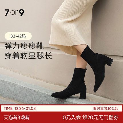 7or9短靴女鞋秋冬粗高弹力瘦瘦靴