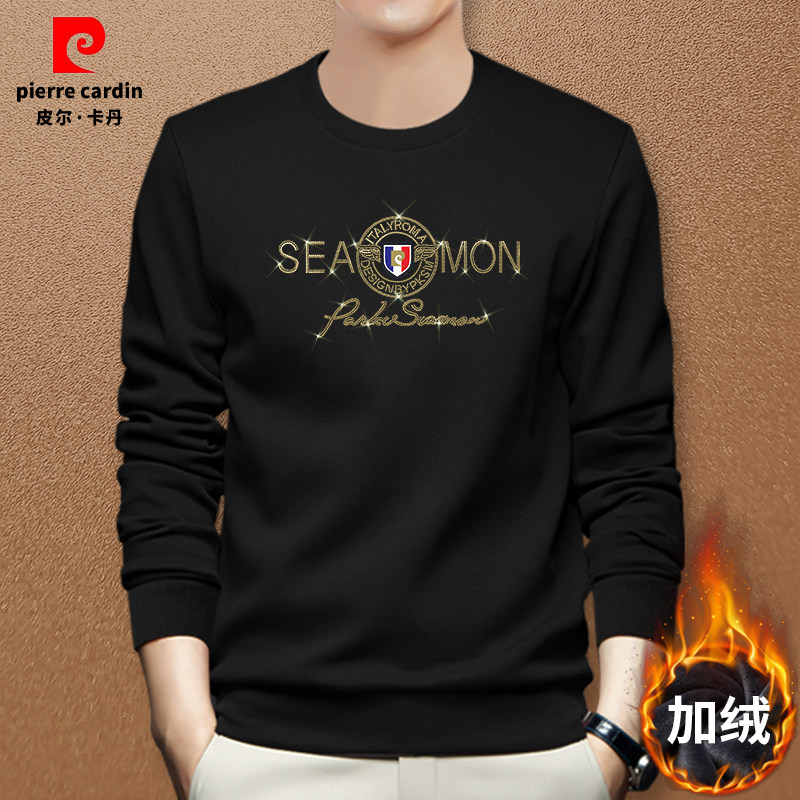 皮尔卡丹春秋冬季修身加绒内搭卫衣男士圆领中青年2026新款上衣服