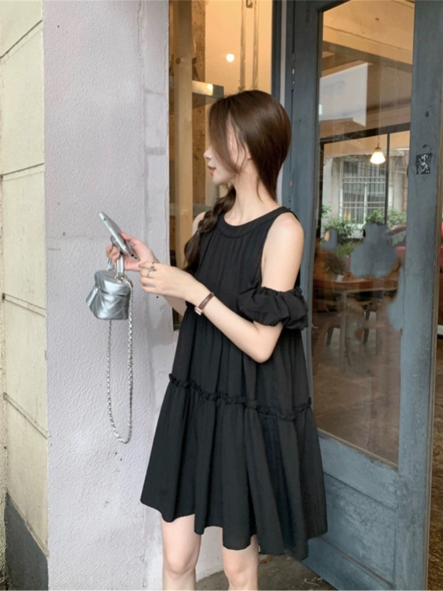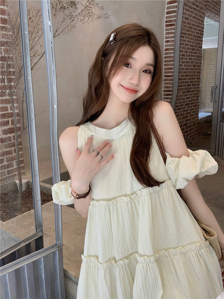设计感小众挂脖露肩连衣裙女夏季新款法式温柔风甜美复古气质裙子