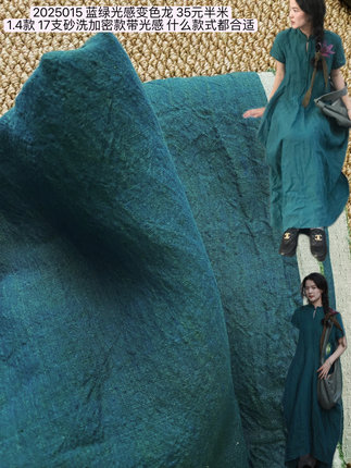 2025021法国进口亚麻变色龙14支绿加咖连衣裙服装面料半米价格