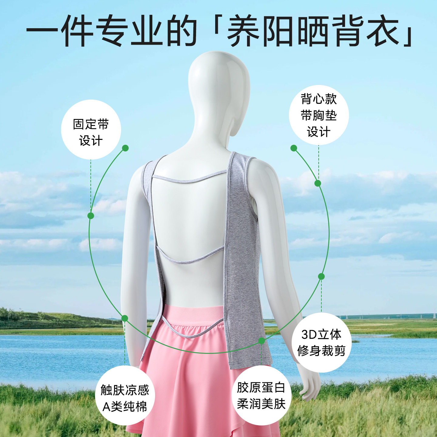 三伏天晒背专用衣纯女棉漏后背露背上衣服神器吊带背心短袖防晒衣