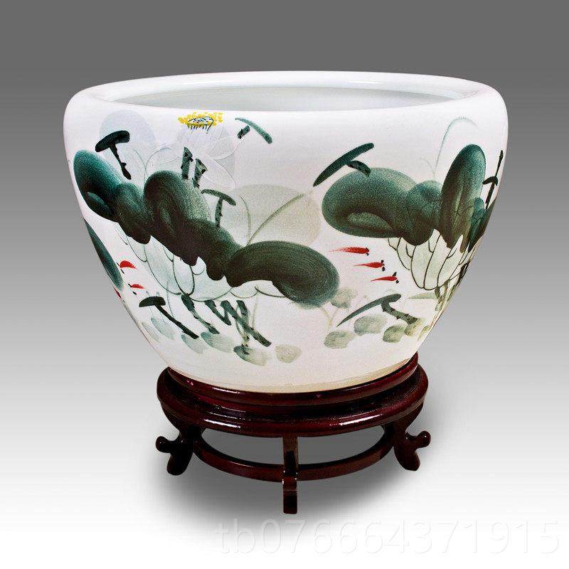 正品景德大镇瓷器箱养金鱼缸创意特小号乌龟缸水族养睡陶莲花盆荷