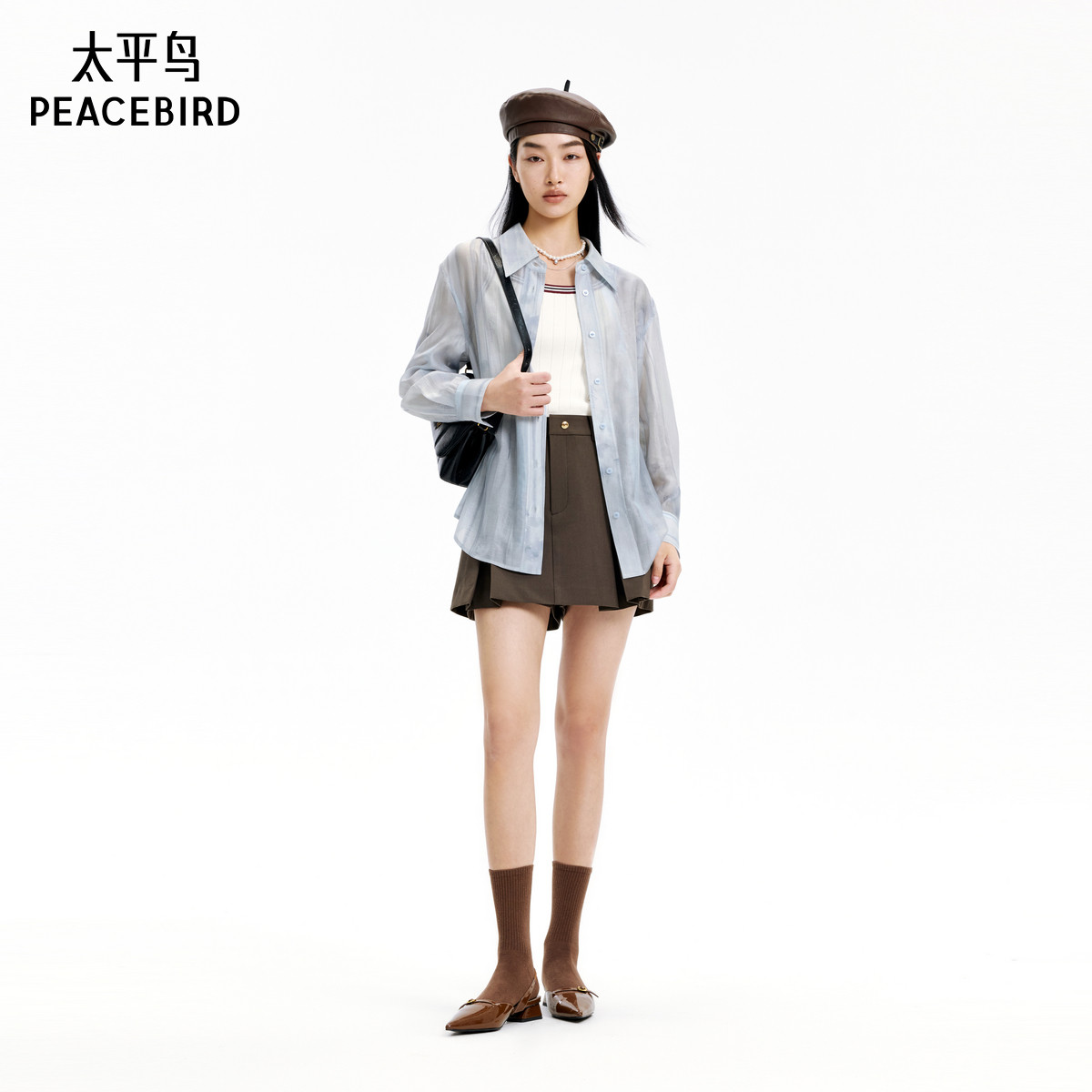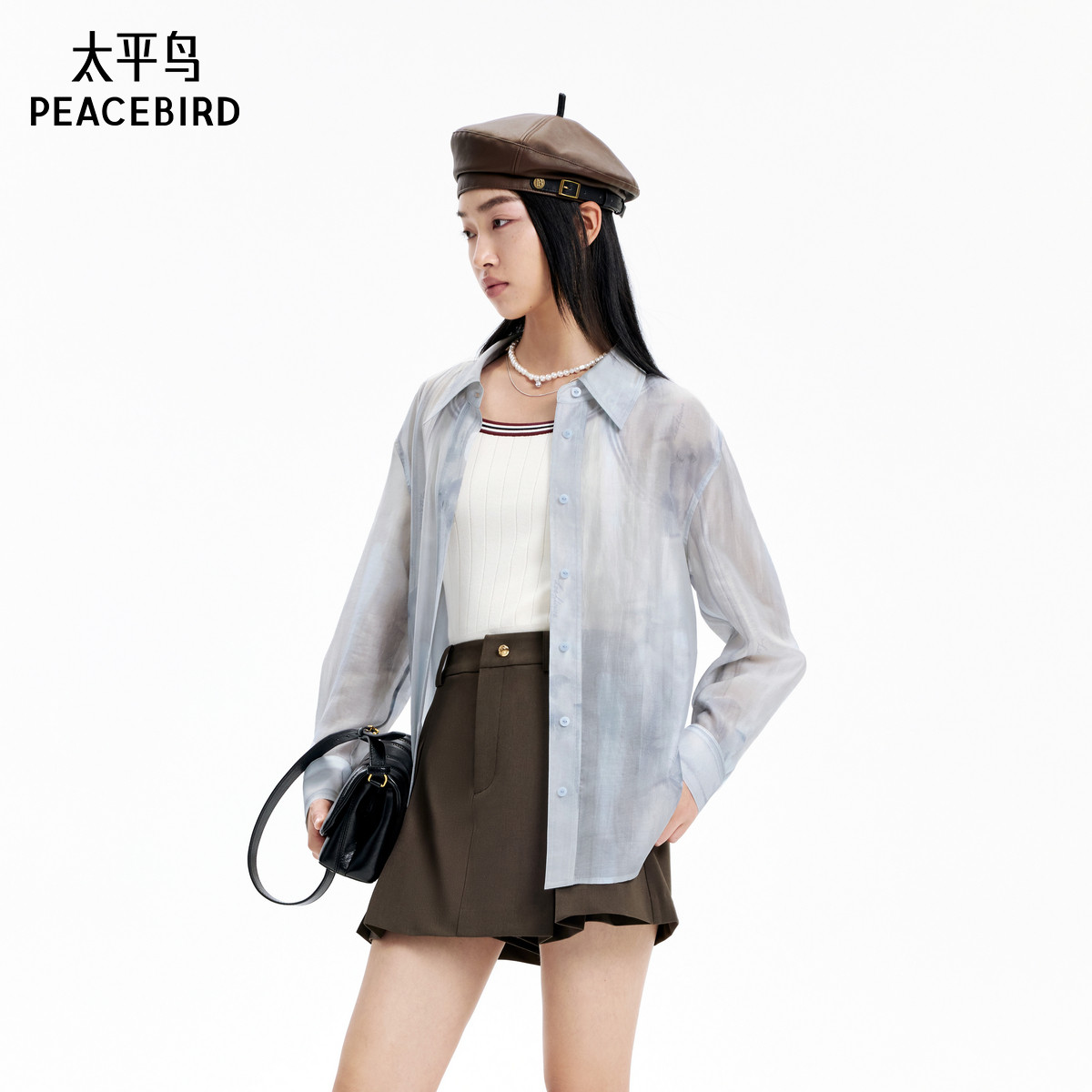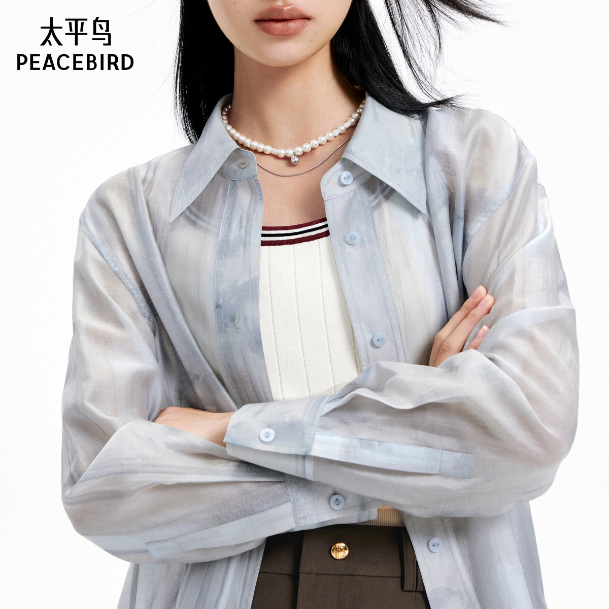 太平鸟女装24年秋季款韩版时尚晕染衬衫A1CAE3152