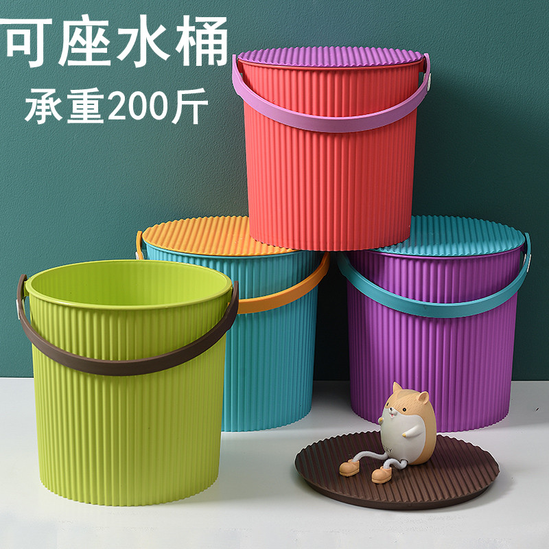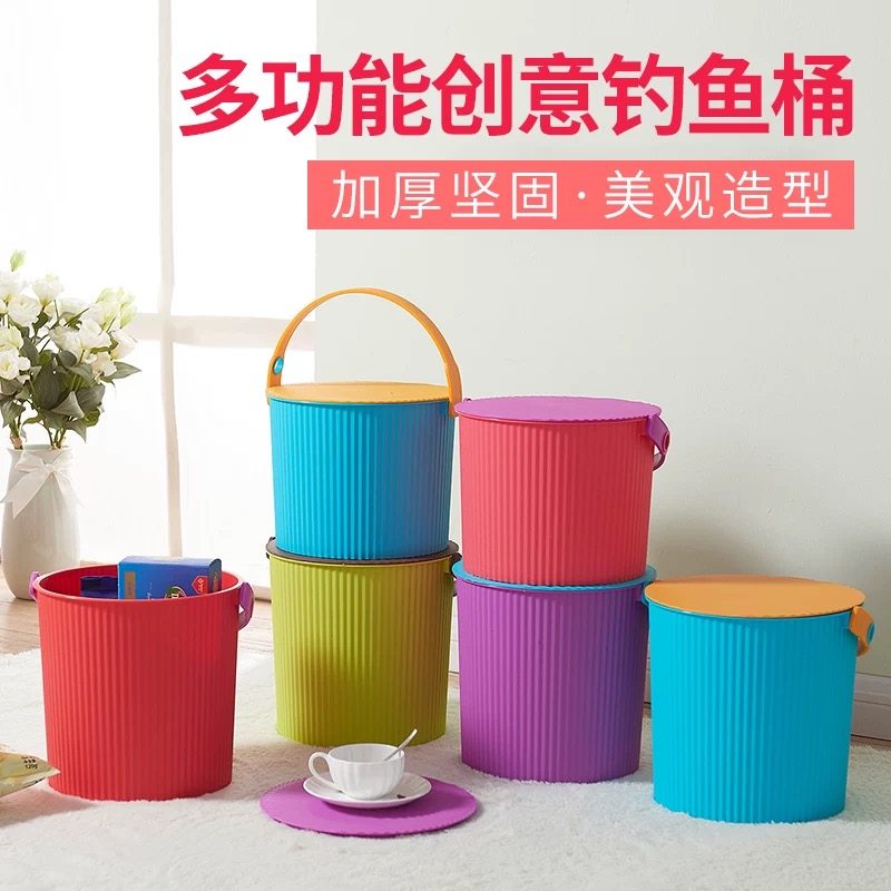 炫彩整理收纳桶玩具垃圾桶钓鱼桶塑料有盖清洁洗衣桶收纳凳水桶