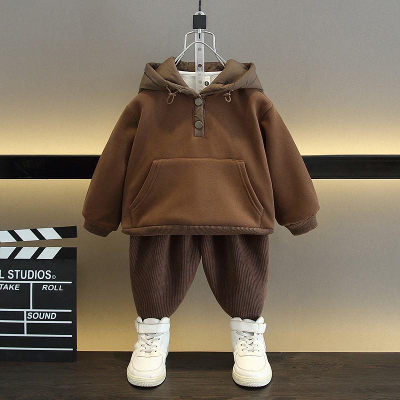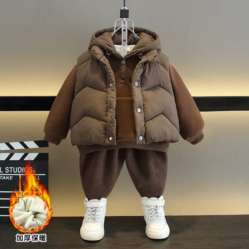 全棉男童加绒套装冬季2025新款儿童宝宝洋气加厚羽绒棉服马甲三件