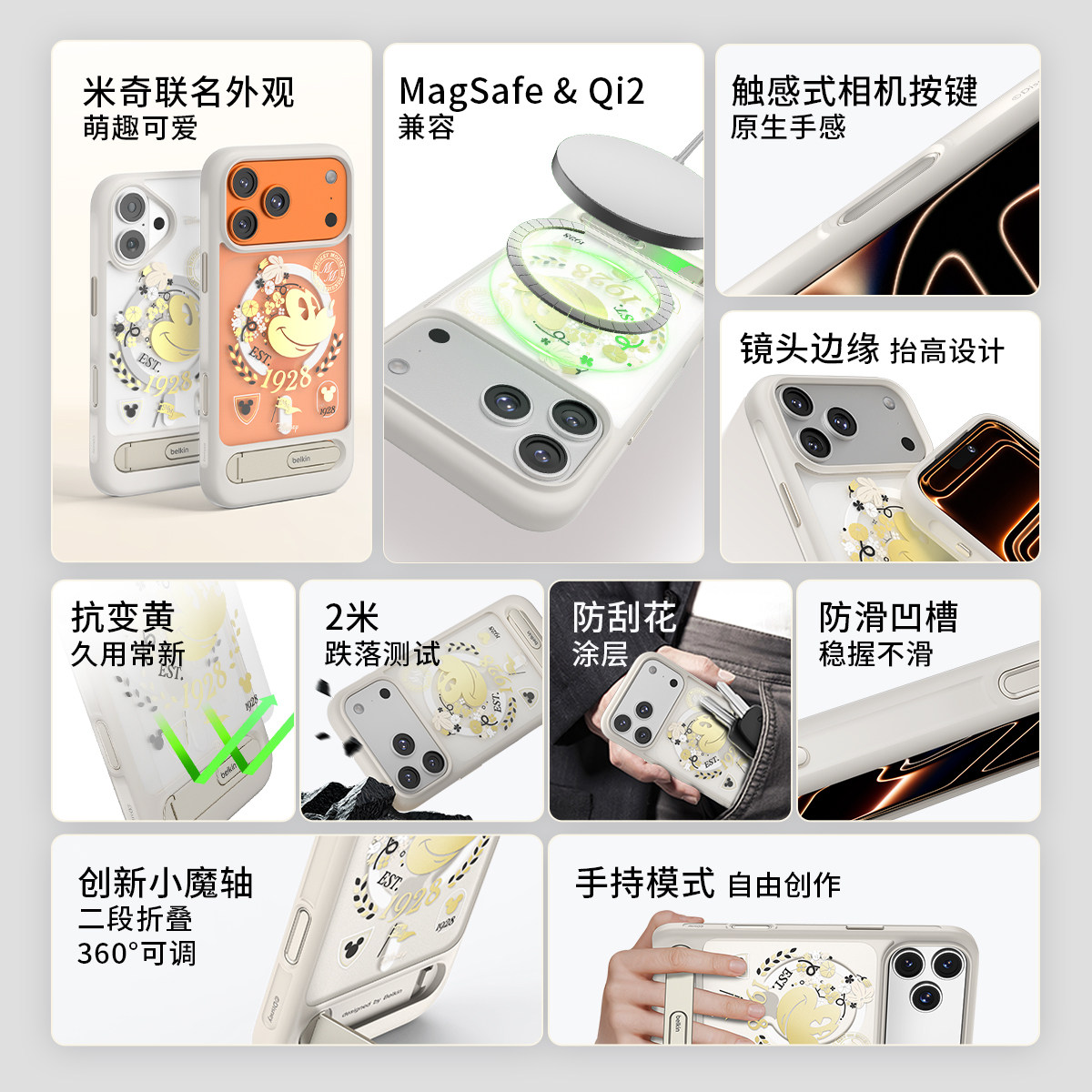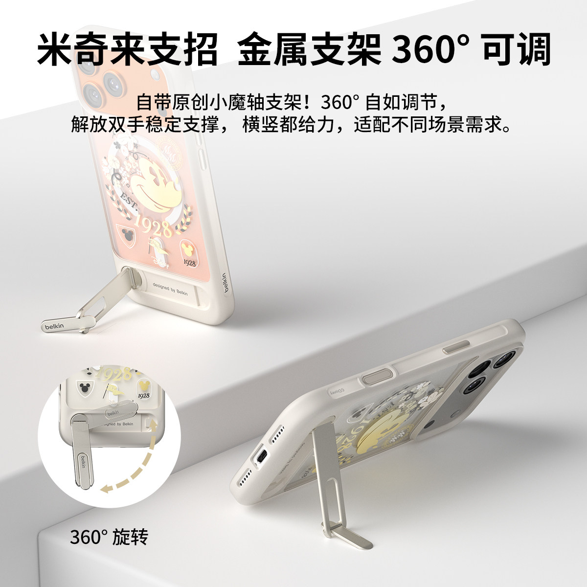 Belkin贝尔金迪士尼米奇360°旋转磁吸支架手机壳适用iPhone17ProMax苹果17保护套兼容MagSafe&Qi2无线充防摔