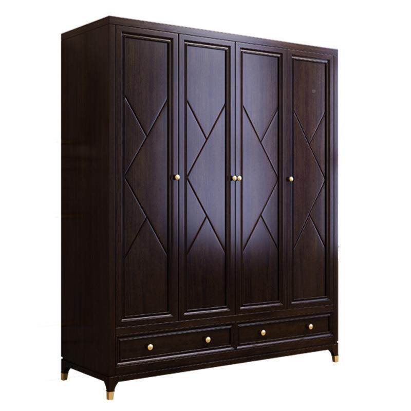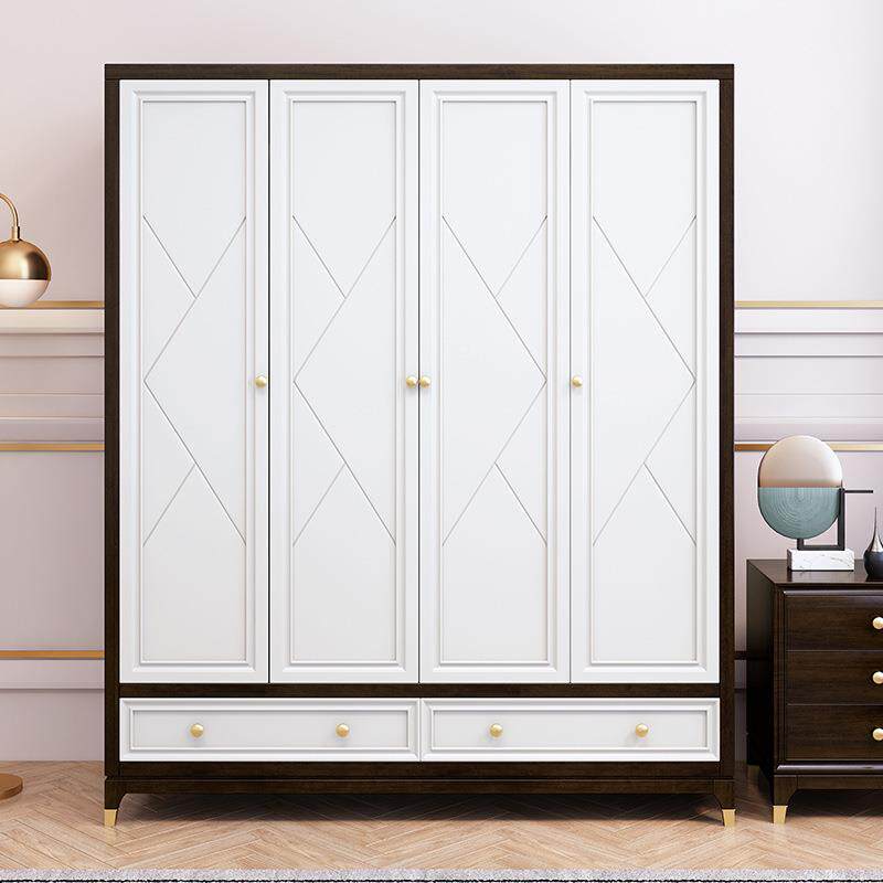 美式实木衣柜奢四门五现代简约卧室成套门合樱桃木轻WIQ家具组大
