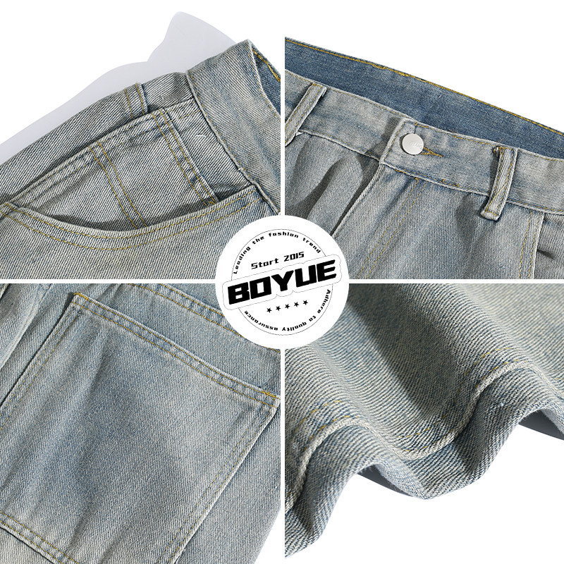 BOYUE帛跃欧美潮流做旧水洗牛仔裤青少年春季宽松显瘦直筒长裤男