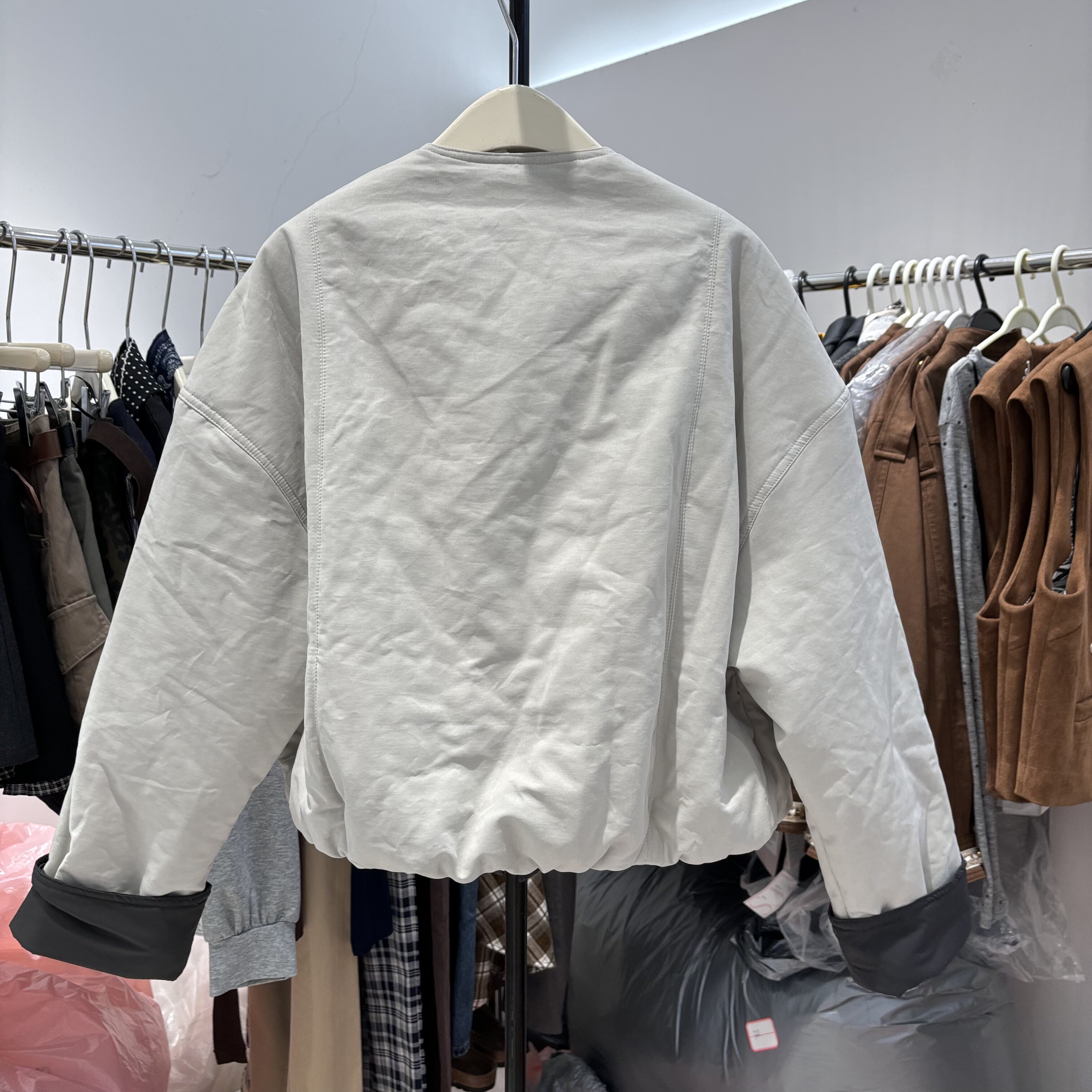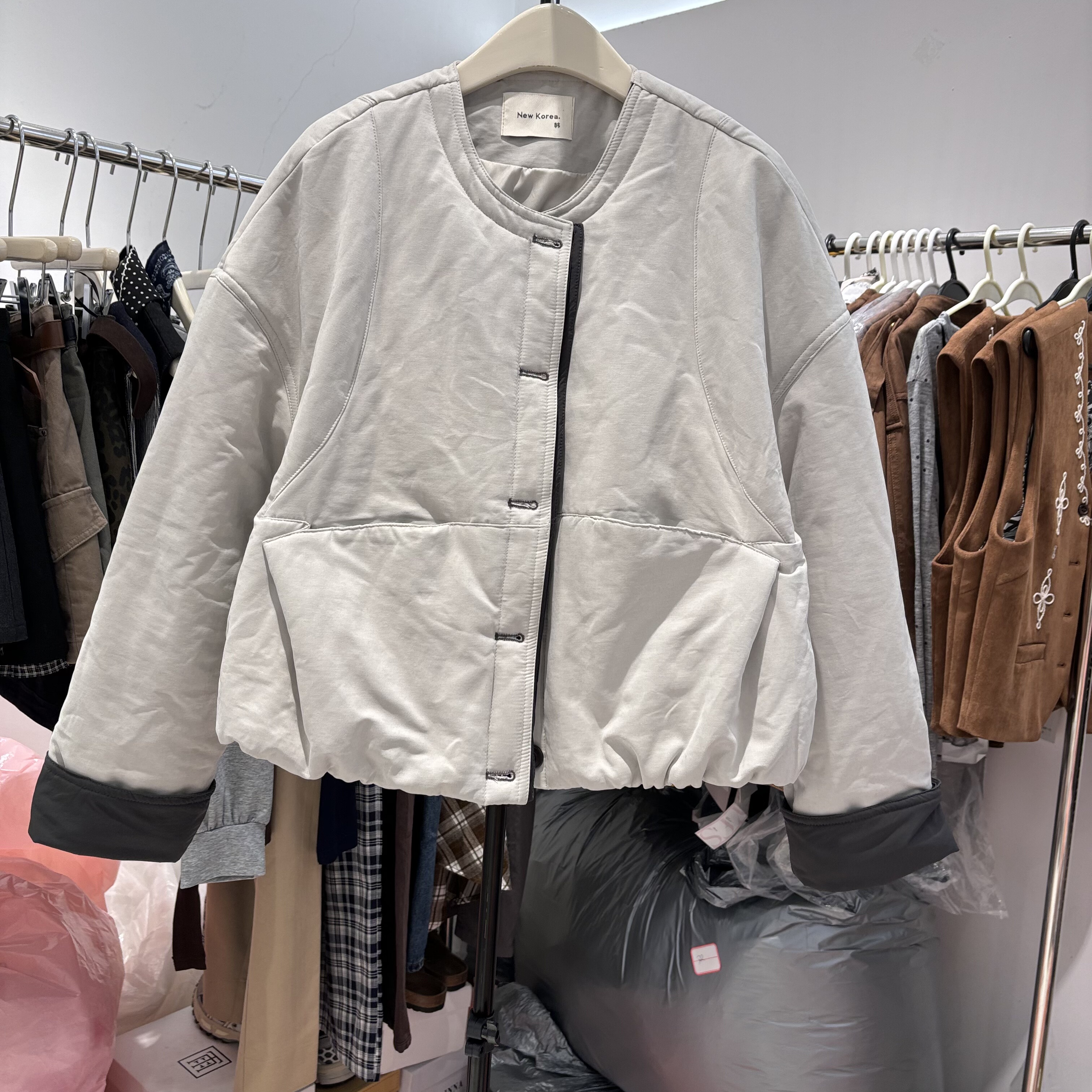 欧货2025秋冬新款高级感拼色短款休闲宽松显瘦外套女上衣棉服