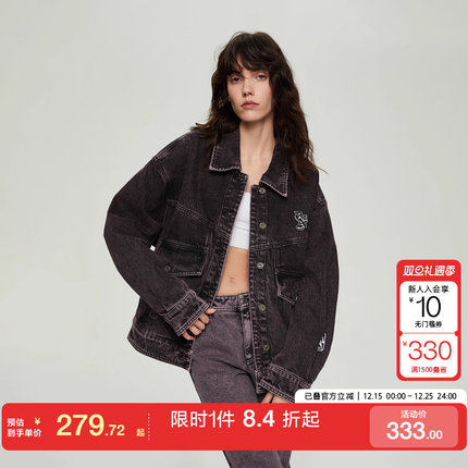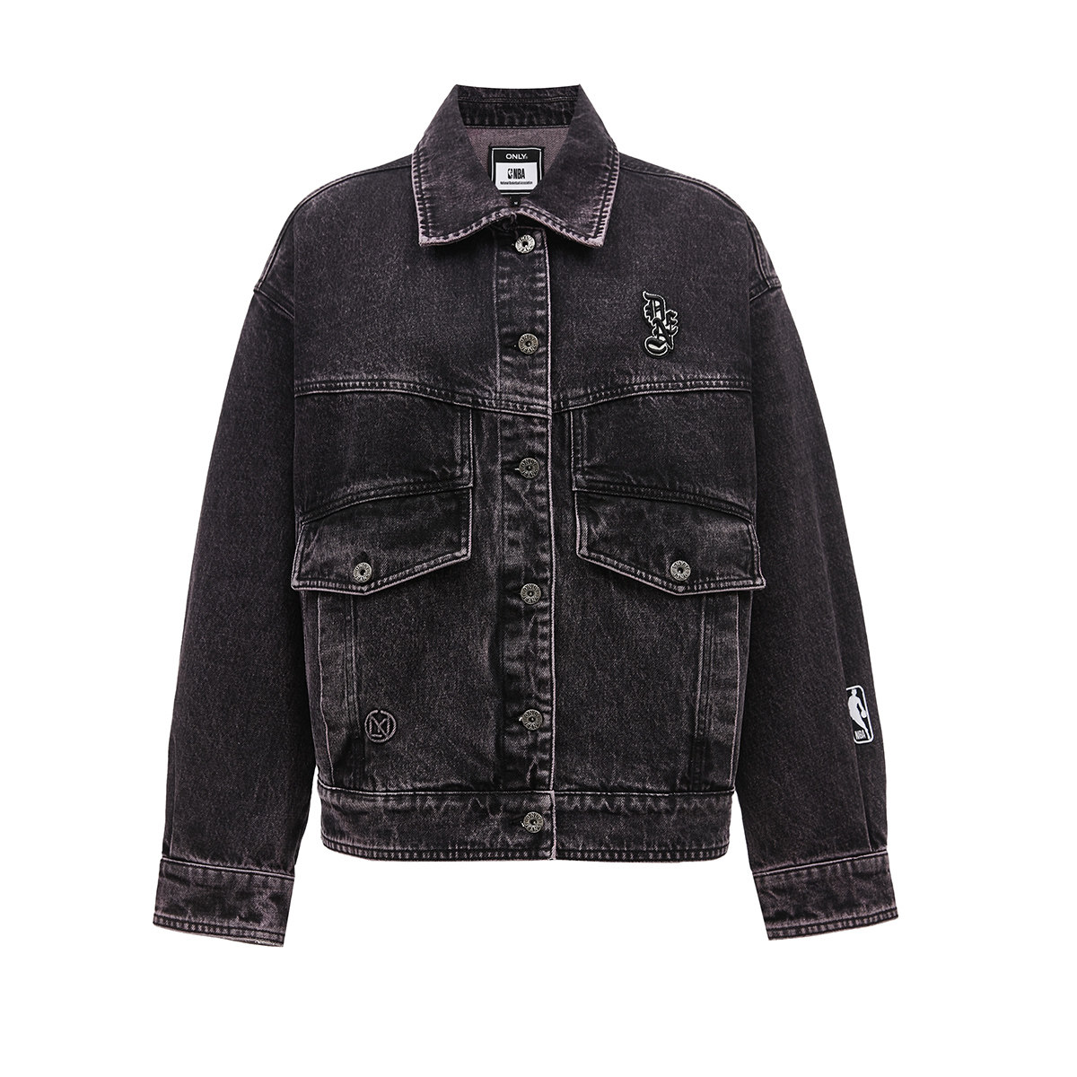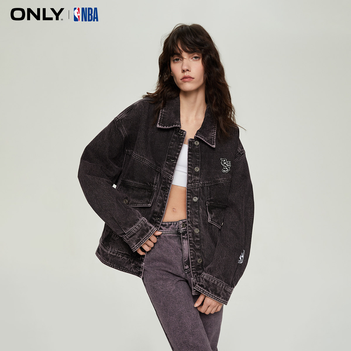 绫致ONLY25春夏新NBA联名款水洗翻领宽松牛仔短外套女时尚