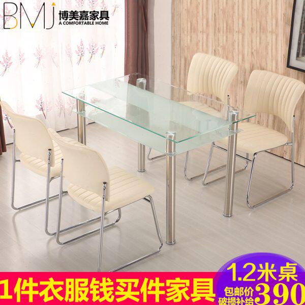 钢化玻璃餐桌椅组合长方形6人小户型简约现代家用吃饭桌子4人餐台