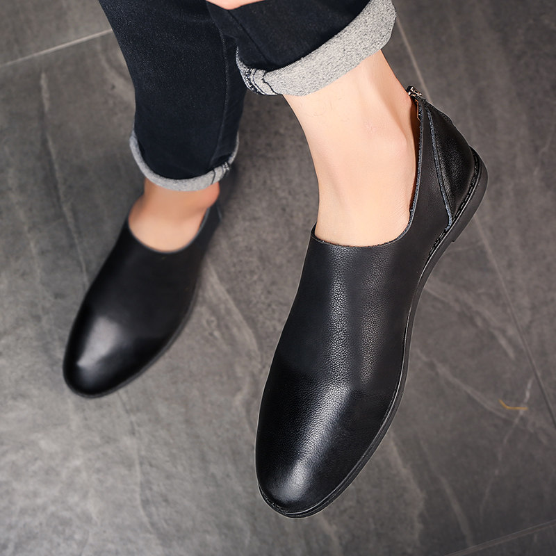 尖头休闲男皮鞋2025新款轻便软低真皮小码时尚潮流一脚蹬豆豆鞋男
