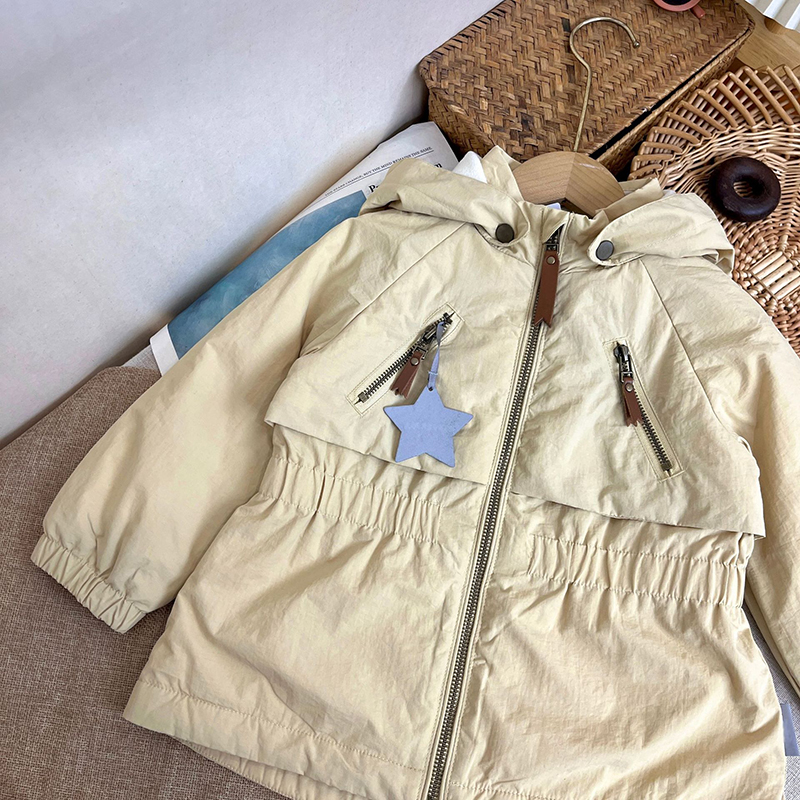冬季新款加绒冲锋衣秋冬加厚女童棉服中小童夹克中长连帽防风外套