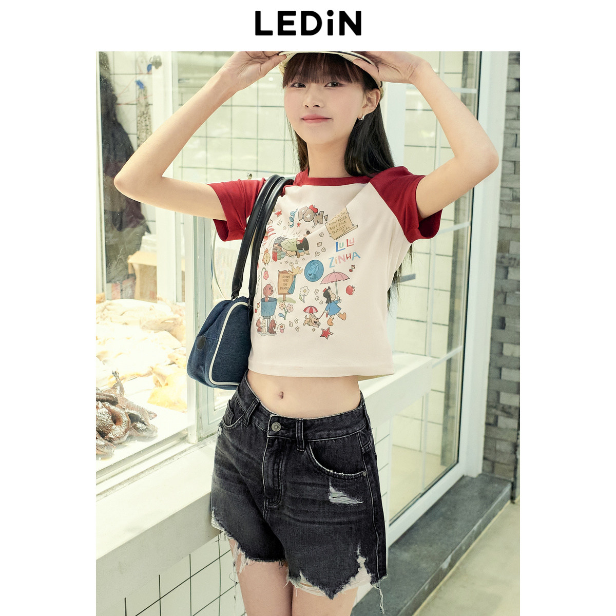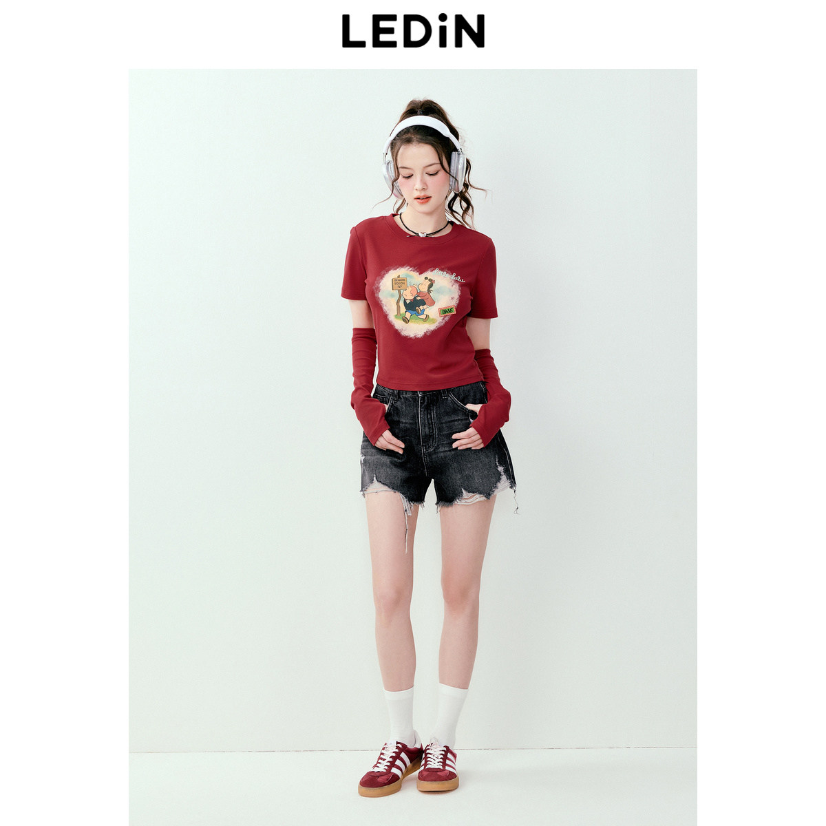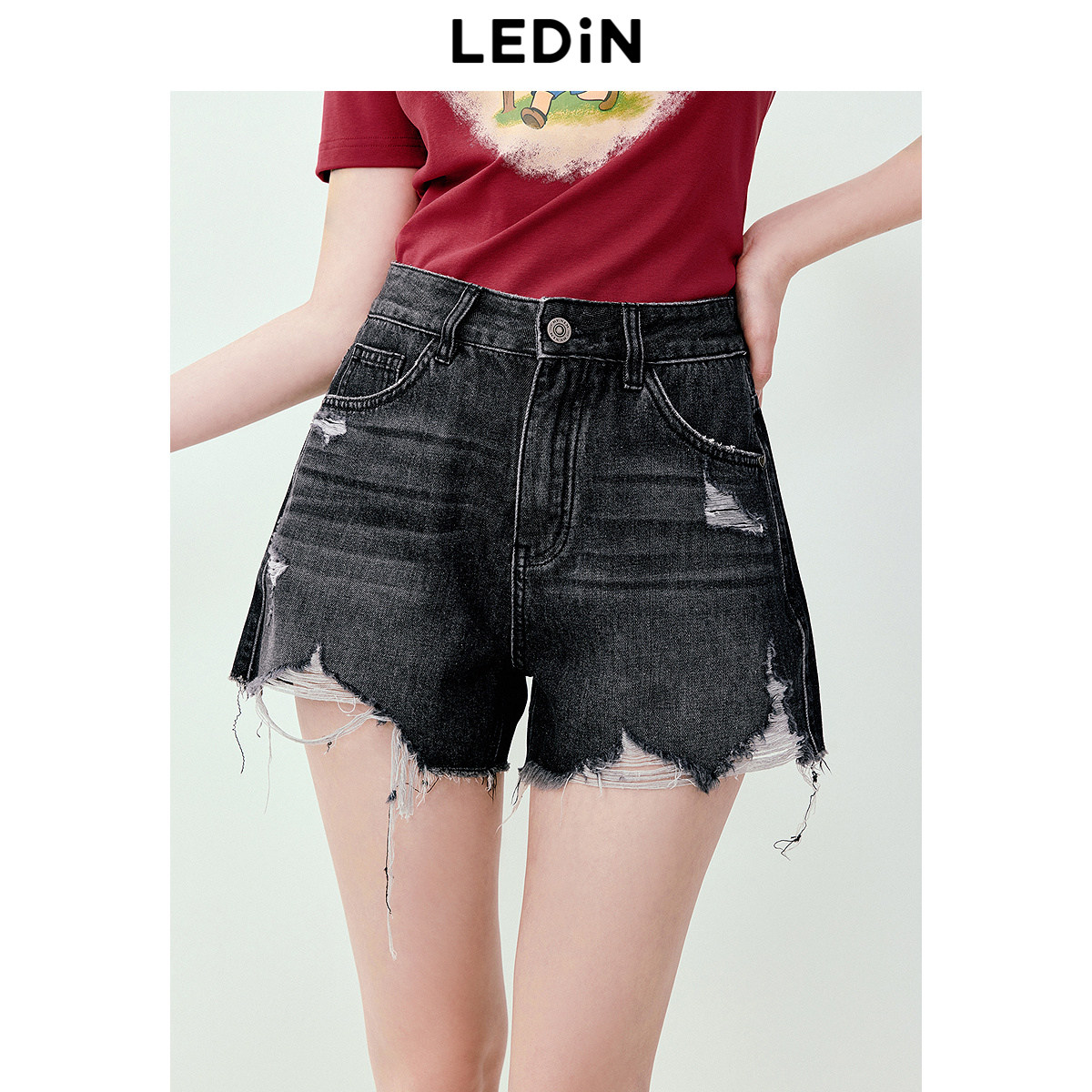 乐町2024夏季新款毛边破洞流苏牛仔短裤C2HBE2166