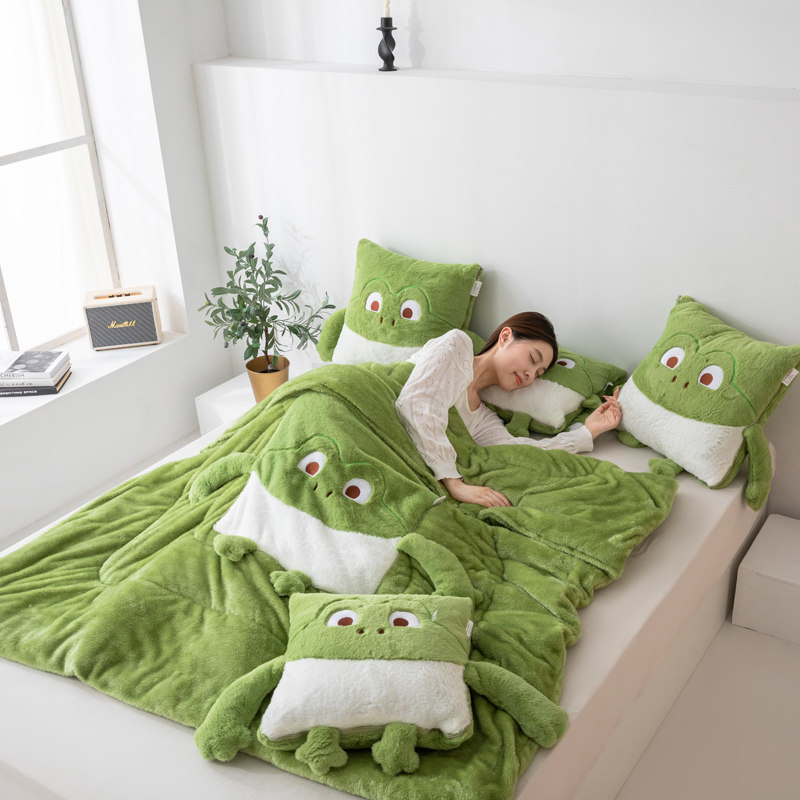 加厚兔毛绒卡通抱枕被子两用汽车沙发午睡靠垫枕X头被子二合一