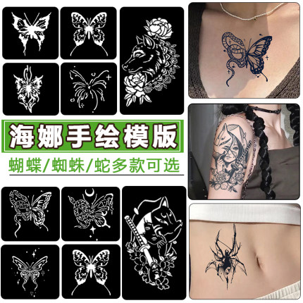 海娜膏纹身镂空模板手绘辅助工具男女果汁膏模板防水持久蝴蝶蛇图