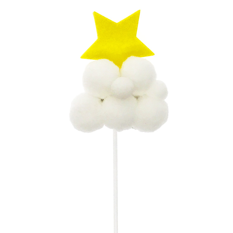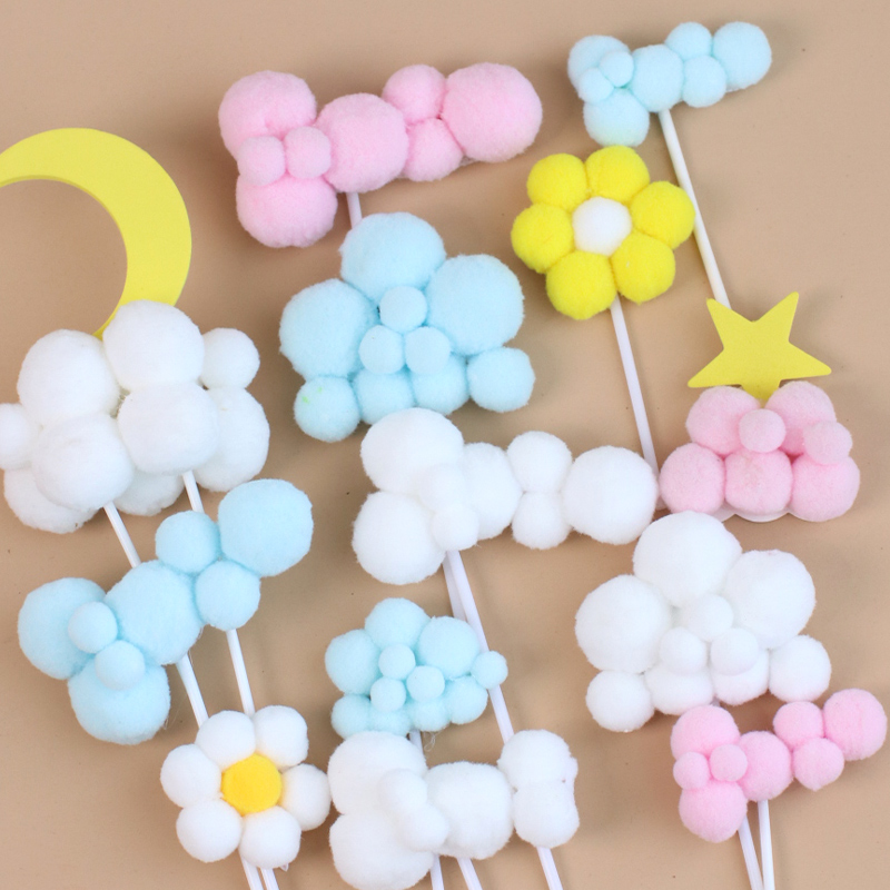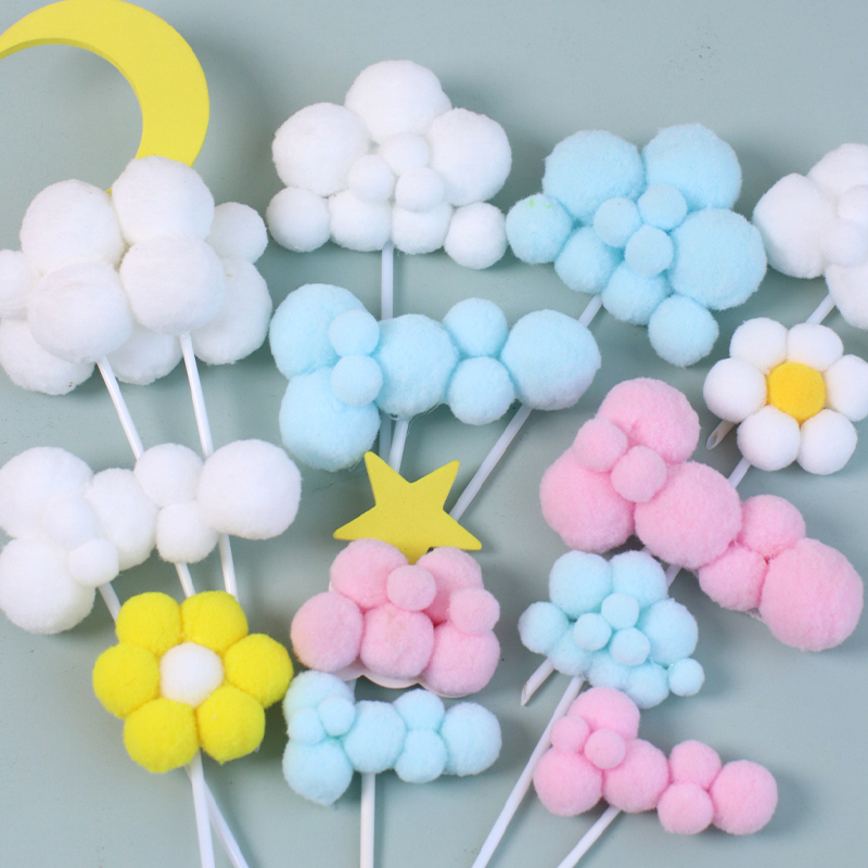 云朵生日蛋糕装饰毛球云朵网红插件月亮白云彩虹蛋糕摆件插旗