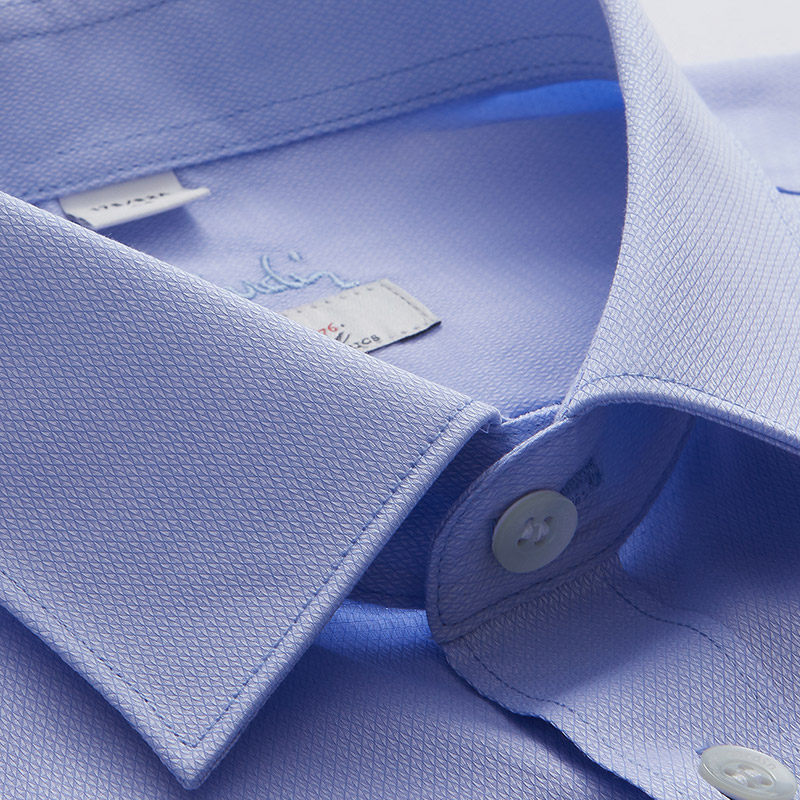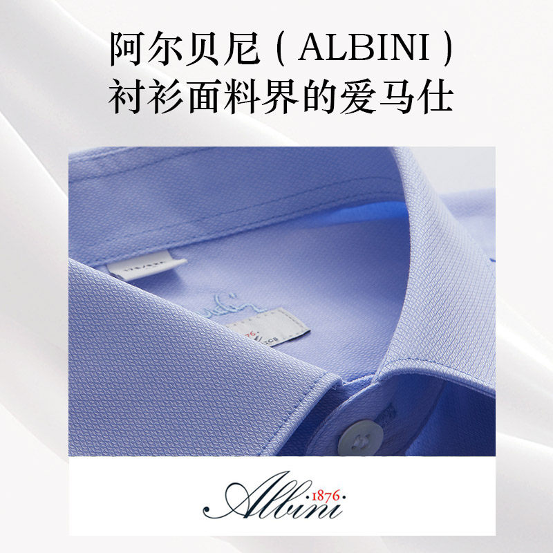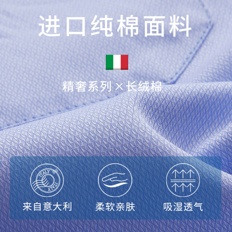 【进口面料】皮尔卡丹秋季男士长袖衬衫纯棉亲肤高级蓝色商务衬衣