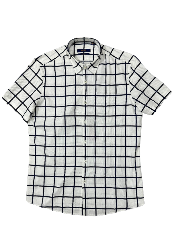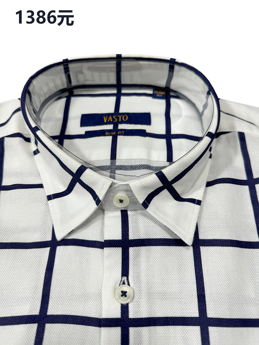 商场同款撤柜1386元男士商务休闲短袖衬衫纯棉透气尖领修身格子夏