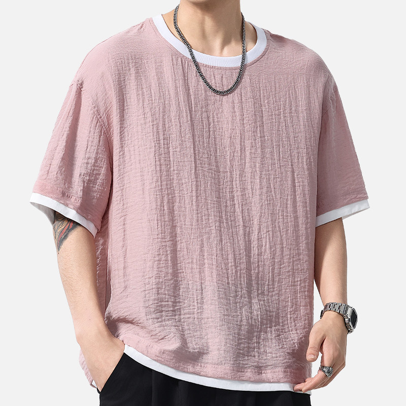罗蒙男士短袖T恤夏薄款2025新款宽松冰丝亚麻透气体恤半袖上衣男