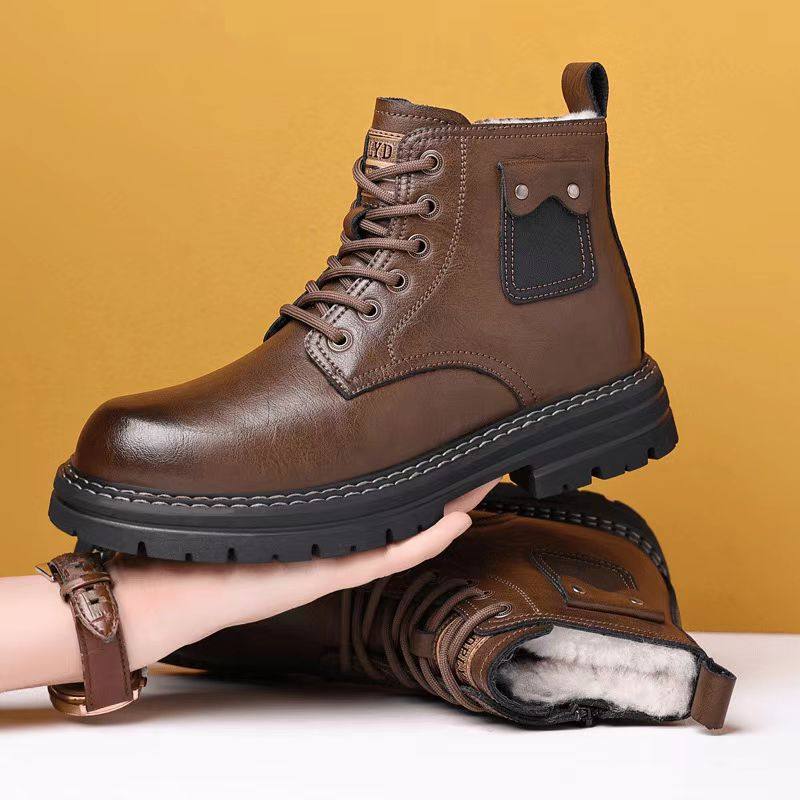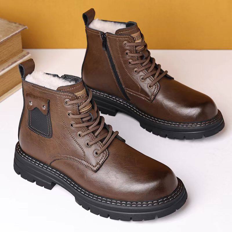 马丁靴男秋冬新款真皮羊毛加绒保暖防滑雪地靴厚底休闲高帮棉皮靴