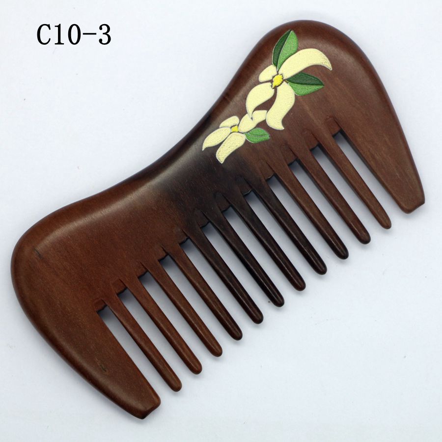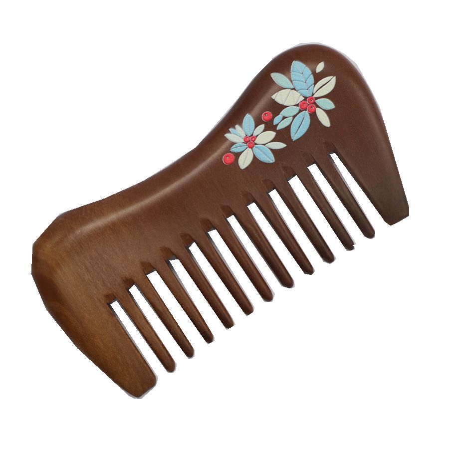 三林老桃木彩绘梳子包包粗齿10cm