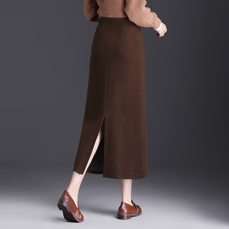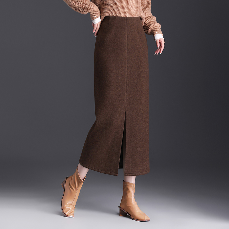 毛呢直筒半身裙开叉包臀一步裙