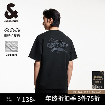 [重磅竹节棉]杰克琼斯男装2025年秋季新宽松男士短袖T恤绒感印花