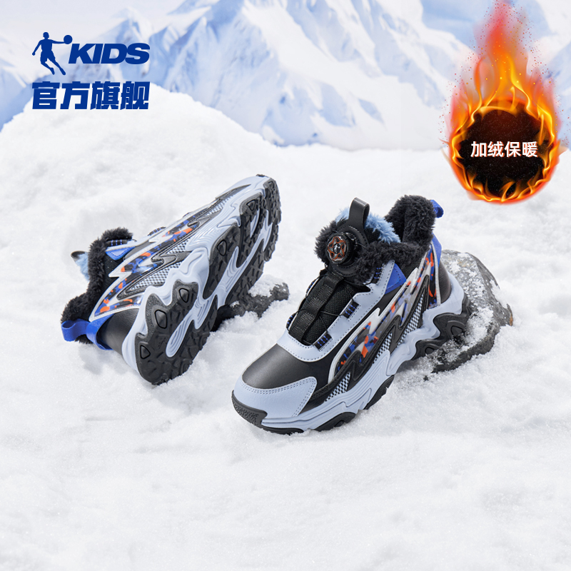 乔丹童鞋男童大棉鞋2025冬款加绒加厚运动鞋纽扣鞋中大童棉鞋冬鞋