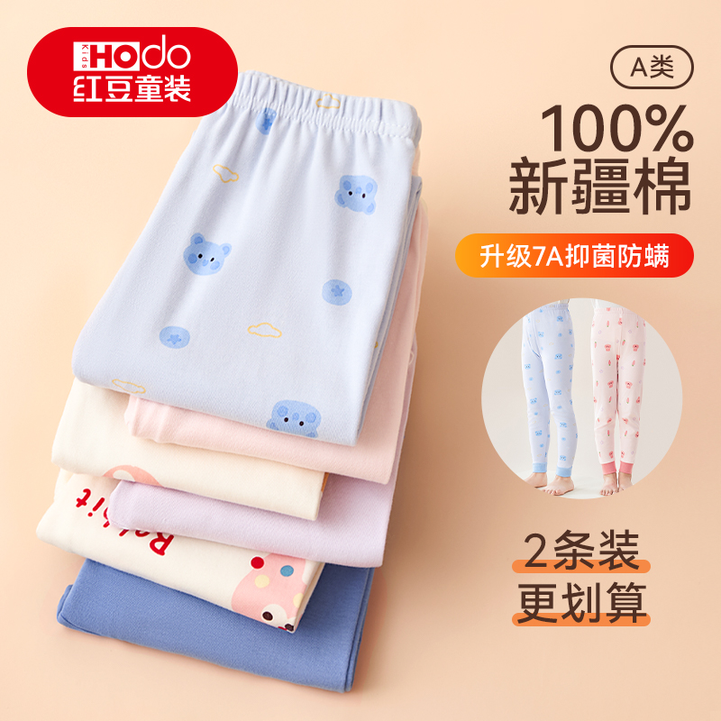 红豆儿童秋裤纯棉内穿男童女童保暖裤100%全棉大童打底线裤棉毛裤