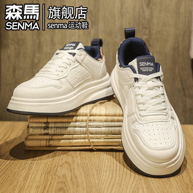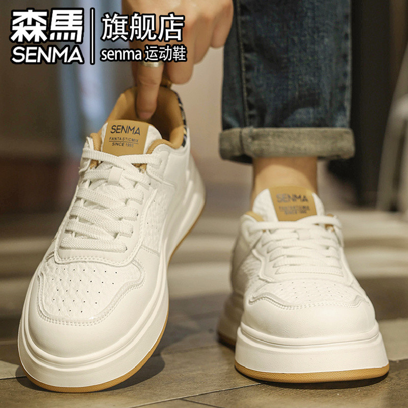 森马男鞋秋季运动休闲低帮板鞋男士真皮皮鞋软底增高百搭小白潮鞋