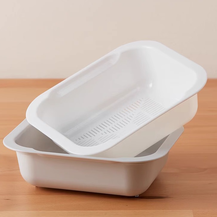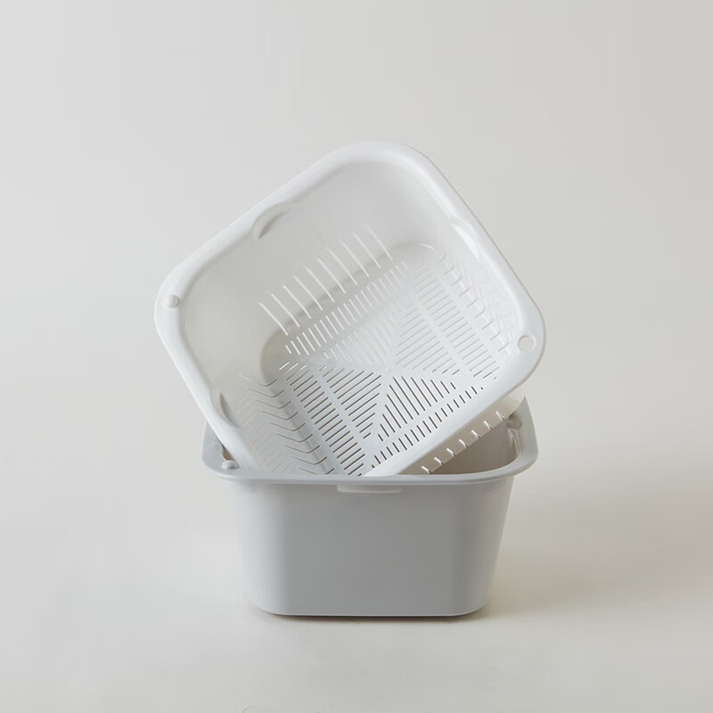 NITORI宜得利家居 家用厨房洗水果洗菜盆方形沥水篮套装