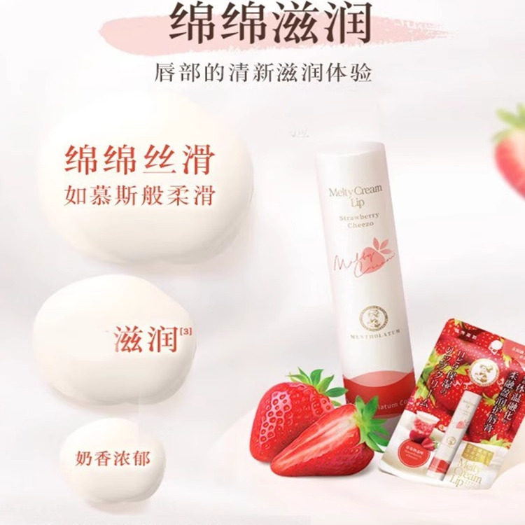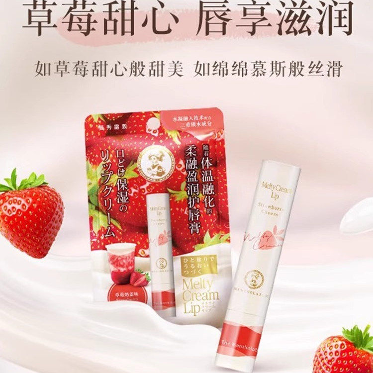 曼秀雷敦柔融盈润护唇膏草莓奶盖味保湿滋润补水绵绵慕斯棒润唇膏